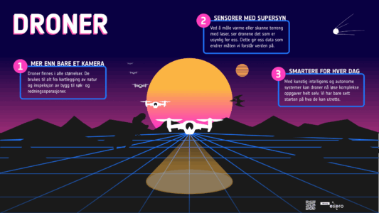 Alle plakatene er utviklet av ESERO Norway og kan lastes ned kostnadsfritt. De fleste er laget som PNG-filer i liggende format (1920×1080 piksler), og passer godt til bruk på digitale tavler, prosjektorer eller skjermer i klasserommet.